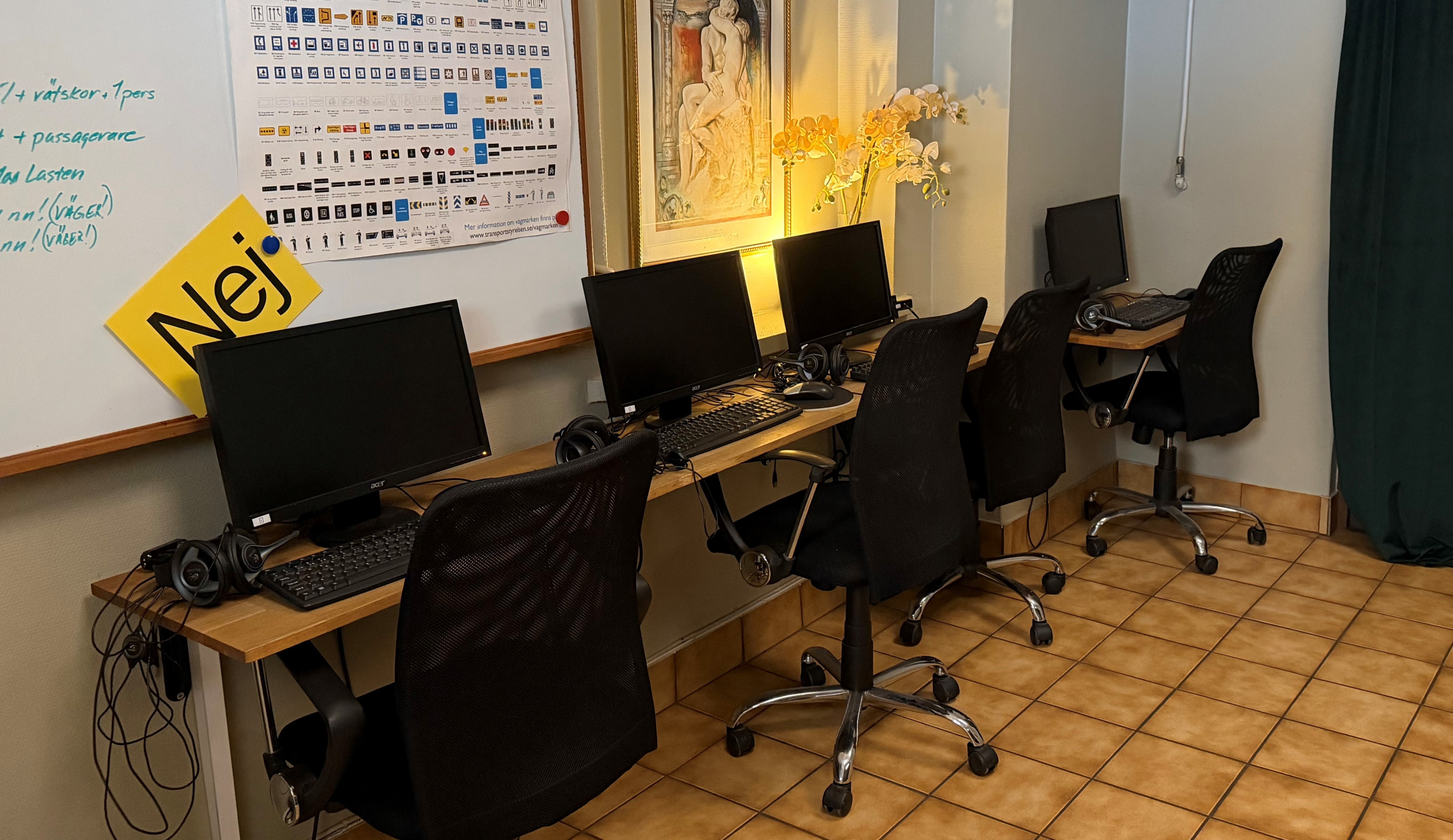 Teorin kan man göra på trafikskolan under kontorets öppettider eller hemma via elevcentralen